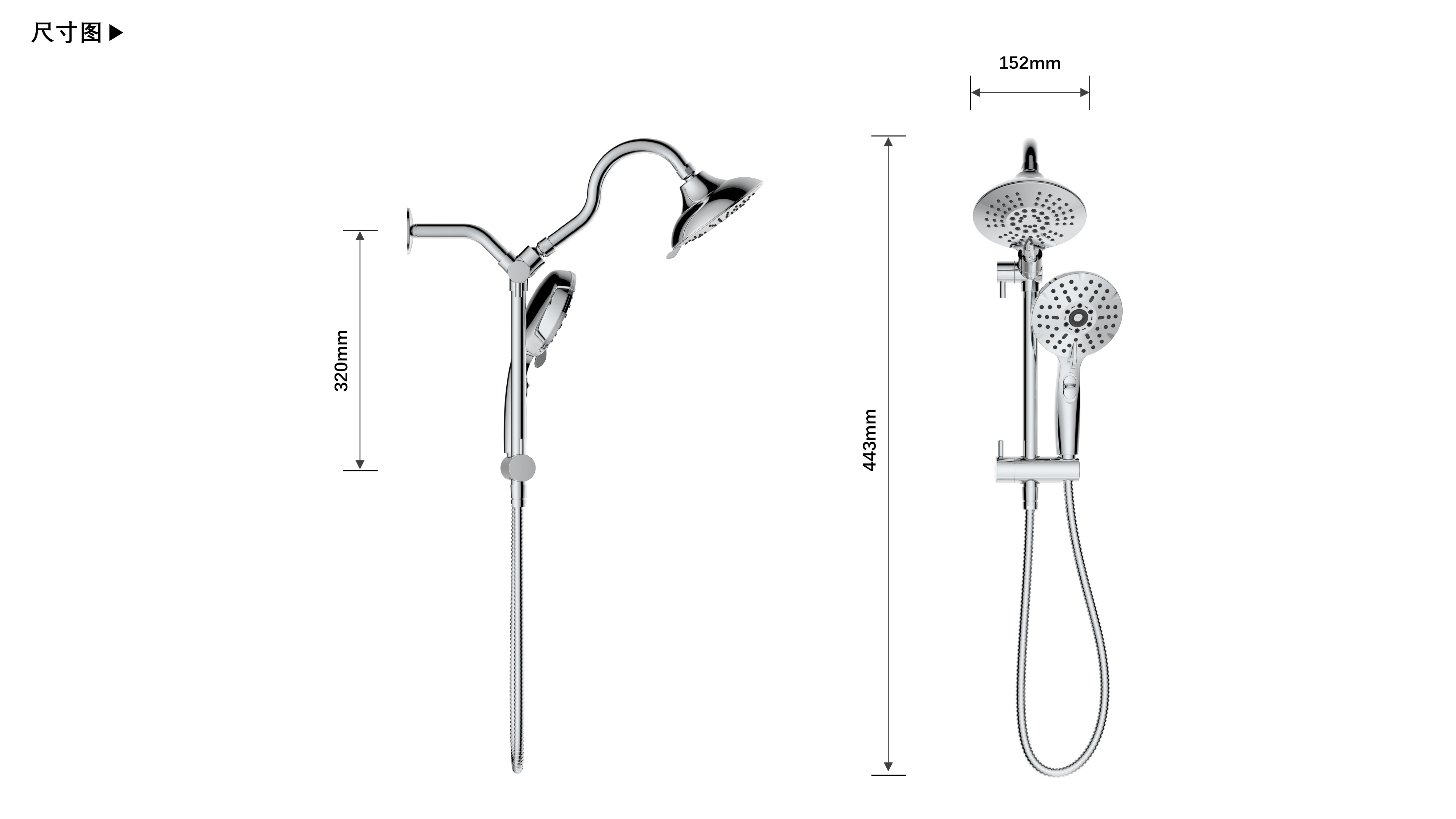 上出水彎管套裝;頂噴內(nèi)置球頭,可實現(xiàn)多角度旋轉(zhuǎn)調(diào)整;把手切換頂噴出水、花灑出水;轉(zhuǎn)動把手調(diào)節(jié)滑座高低;5功能出水花灑