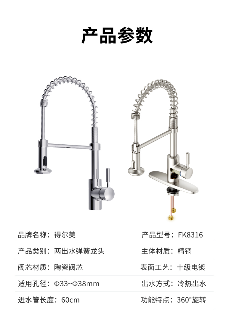 FK8316 廚房彈簧抽拉龍頭
